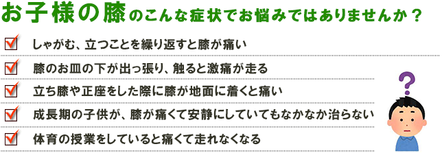 オスグッド病は正式名称としてオスグッド・シュラッター病と言われ、成長期のバスケットやバレーボール、サッカーなどスポーツ少年(10~15歳)に起こりやすいと言われている膝の痛みです。